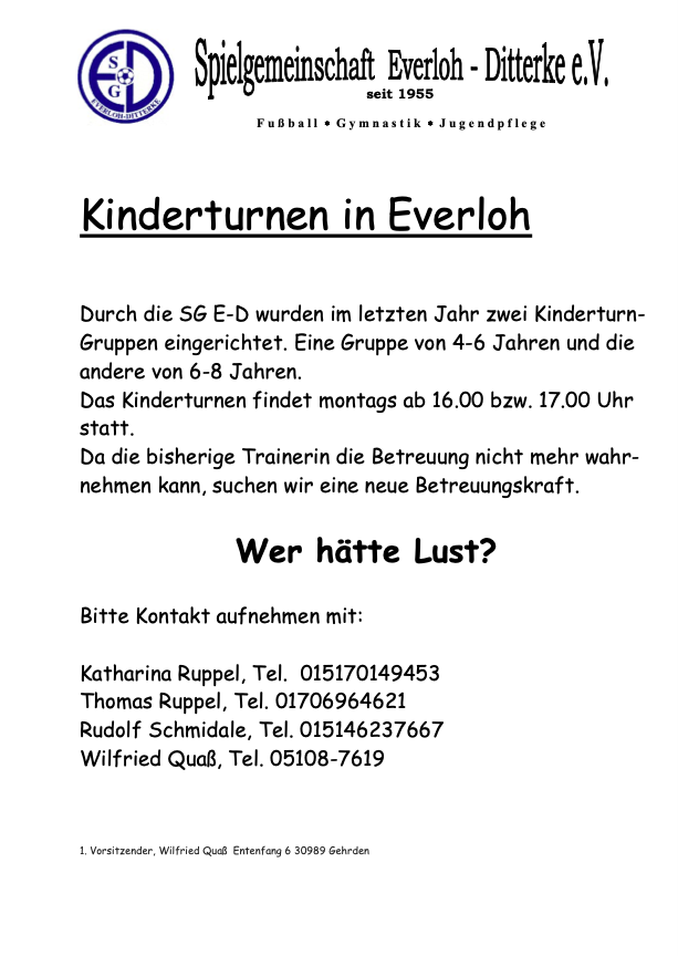 Kinderturnen in Everloh